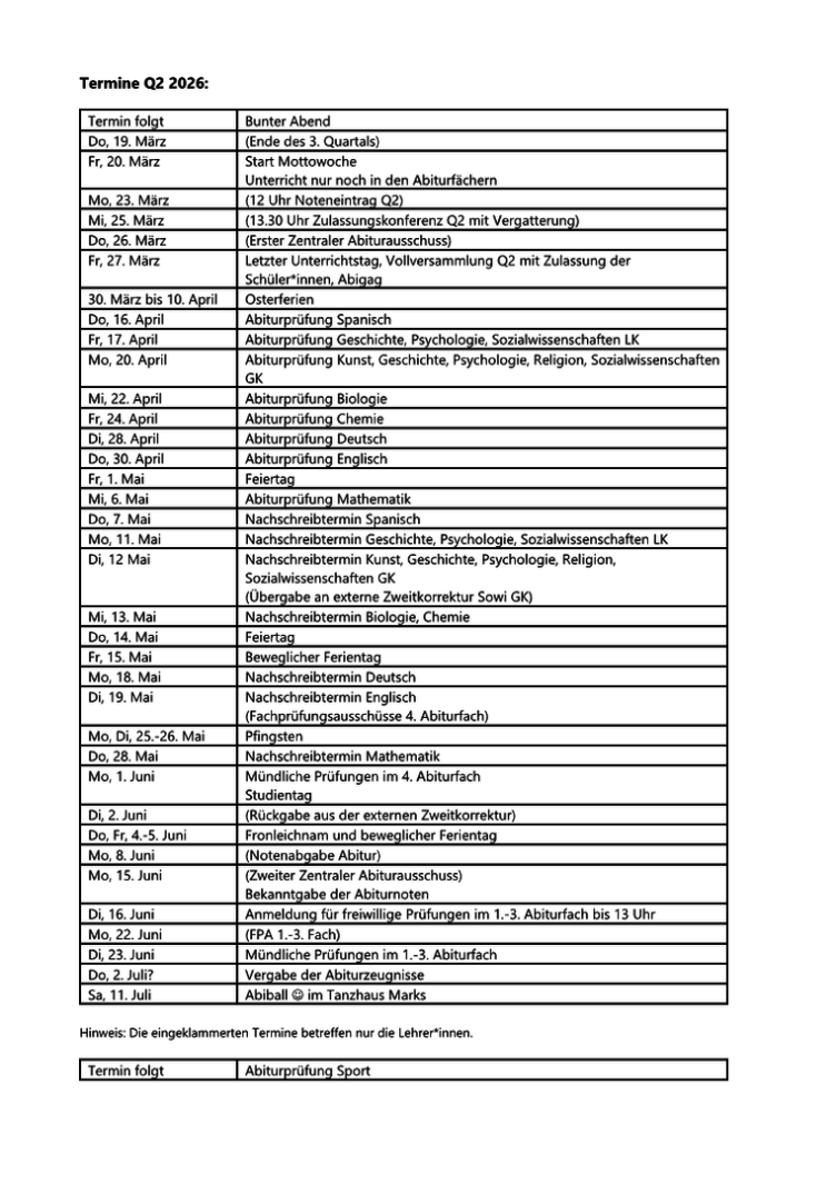 Abiturtermine EKG 2026