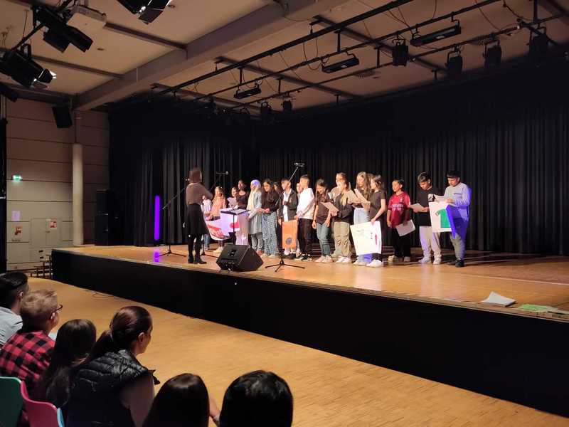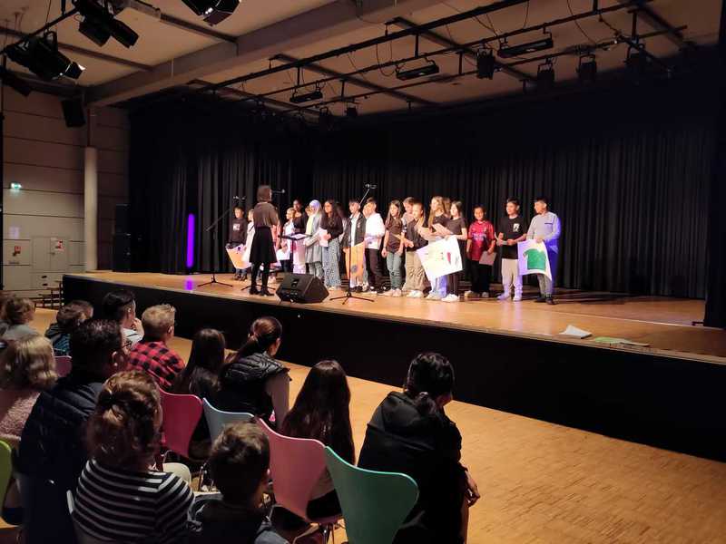 Die Sommerferien sind vorbei und der zweite Schultag für die Jahrgänge sechs bis Q2 hat begonnen. Nervös gehen zwei Schülerinnen aus der 6g Richtung Forum. Auf der Bühne ist die Aufregung dann aber bald verflogen. Gemeinsam mit anderen SchülerInnen des Unicef-Chores singen die Mädchen das selbst geschriebene und komponierte Unicef-Lied. Musiklehrer Marcus Linnemann begleitet das Stück. Vor dem Chor sitzen 95 neugierige FünftklässlerInnen. Heute ist ihr erster Schultag an der an der Erich Kästner-Gesamtschule Bünde. Begleitet werden die SchülerInnen von ihren Eltern und Erziehungsberechtigten. Frau Groß, Abteilungsleitung der Jahrgänge fünf bis sieben, heißt die Neulinge herzlich willkommen und erklärt den Ablauf des Schultages. Daraufhin folgen weitere Auftritte des sechsten Jahrgangs. Jede Klasse hat eigenes für diesen Tag eine besondere Darbietung einstudiert. Aber auch der traditionelle Auftritt der Poi-Gruppe darf nicht fehlen. Jede Vorstellung wird mit großem Applaus gewürdigt. Dann geht es endlich los: Die KlassenlehrerInnen der neuen FünftklässlerInnen gehen nach vorne Richtung Bühne und rufen ihre Schützlinge auf. In Zweierreihen geht es anschließend Richtung A-Trakt zu den verschiedenen Klassenräumen. Nun beginnt ein neuer, spannender Lebensabschnitt.