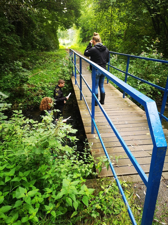 Die Oberstufenschülerinnen und -schüler gingen noch einen Schritt weiter: Sie bestimmten neben der Häufigkeit des Auftretens verschiedener Gewässerorganismen, um so die biologische Wasserqualität zu bestimmen, auch Faktoren, wie etwa die Wasser- und Lufttemperatur als auch die Fließgeschwindigkeit des Baches. Des Weiteren wurden chemische Werte wie der jeweilige Gehalt an Sauerstoff, Ammonium, Nitrit und Nitrat ermittelt.