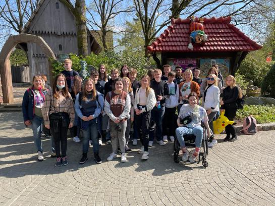 Nach zwei langen Jahren ohne Ausflüge und Klassenfahrten freuten sich die Schülerinnen und Schüler des 9. Jahrgangs am 28. April über ihren Ausflug in den Heidepark Soltau. Die äußeren Bedingungen hätten nicht besser sein können: Die drei Reisebusse konnten staufrei zum Park hin und zurück fahren und die Sonne lachte den ganzen Tag. In Kleingruppen testeten die Schülerinnen und Schüler mutig Achterbahnen, erfrischten sich beim Rafting oder entspannten sich in der Sonne. Am Ende des Tages blickten die Eltern in erschöpfte, aber zufriedene Gesichter ihre Kinder und der begleitenden Klassenlehrerinnen und -lehrer. Der Ausflug war eine tolle Gelegenheit, um die Gemeinschaft zu stärken und positive Erfahrungen zu sammeln.