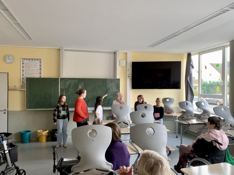 In der Schule werden anschließend die erlebten Momente gemeinsam reflektiert. Dabei werden beispielsweise kindgerechte Kurzfilme über Demenz gezeigt und über verschiedene Krankheiten gesprochen. Zudem lernen die Teilnehmenden den Umgang mit Bewohnerinnen und Bewohner, die schwerhörig sind, schlecht sehen können, Demenz haben oder im Rollstuhl sitzen, kennen. Ein Wunsch der Schülerinnen und Schüler, der für die Winterzeit geplant ist, ist es, den Film „Honig im Kopf“ zu gucken, der das Thema Demenz in den Fokus rückt.