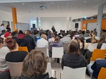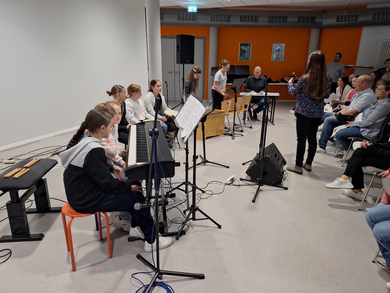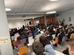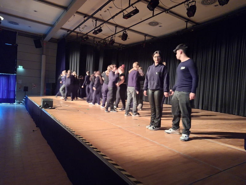 Nachdem die DG-Kurse und die Poi-AG ihre Ergebnisse der vergangenen Wochen präsentiert hatten, wechselte die Veranstaltung den Ort. Wie der Name vermuten lässt, ging es in der Mensa der Schule weiter. Hier mussten zunächst einige Stuhlreihen hinzugefügt werden, da die Zuschaueranzahl an diesem Abend ausgesprochen hoch war – sehr zur Freude der Organisatoren Frau Dittbrenner und Herr Linnemann.