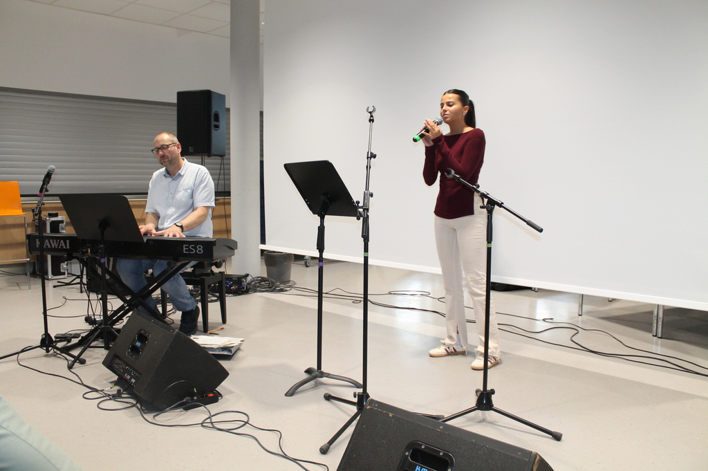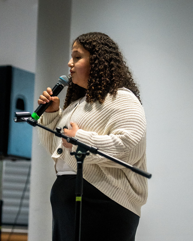 Ein musikalischer Übergang erfolgte in der Mensa, in der Kästners Chor – Schülerinnen und Schüler, die mit Frau Rotzoll und Herrn Linnemann im Juni eine Woche nach Voiron fahren – mit einer gefühlvollen Interpretation von „Count on Me“ (Bruno Mars) für Gänsehaus sorgte. Besonders bewegend war der darauffolgende Auftritt von Yildiz K. aus dem fünften Jahrgang, die mit dem Lied „Wildflower“ zum ersten Mal vor einem so großen Publikum sang.