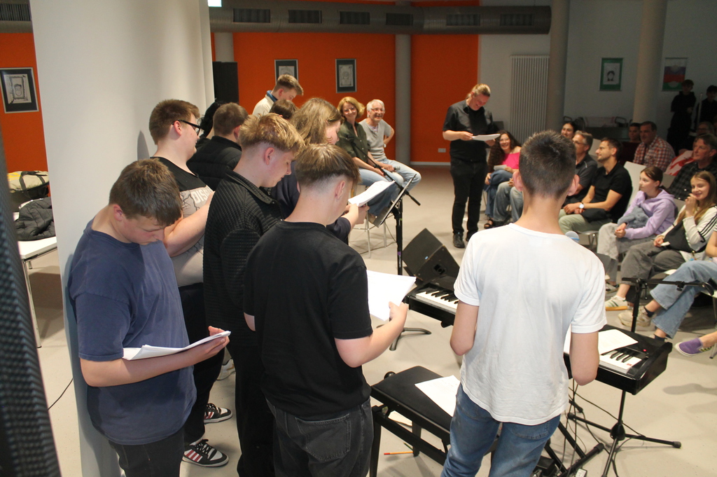 Madlaine S., eine ehemalige Schülerin, sorgte mit ihrer Interpretation von „Anyone“ (Demi Lovato) für Gänsehautstimmung. Es folgte der Projektkurs von Frau Assmann, der ein eigens geschriebenen Text mit dem Titel „Die Traumschule“ aufführte – kreativ, pointiert und nachdenklich zugleich. Den Abschluss des Abends bildete erneut Kästners Chor, dieses Mal mit einer gefühlvollen Interpretation des Klassikers „Imagine“ (John Lennon) – ein emotionaler Schlusspunkt.