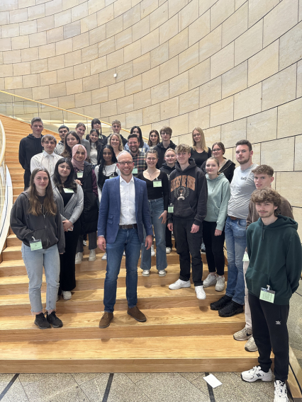 Poltische Bildung geschieht am besten dort, wo Politik gemacht wird. So besuchten am vergangenen Dienstag die Sozialwissenschaften-Kurse der Q1 der Erich Kästner-Gesamtschule den Landtag in Düsseldorf. Bei einer Diskussion mit dem Abgeordneten Christian Obrok, erfuhren die jungen Erwachsenen die Bedeutung demokratischer Zusammenhänge vom Profi.