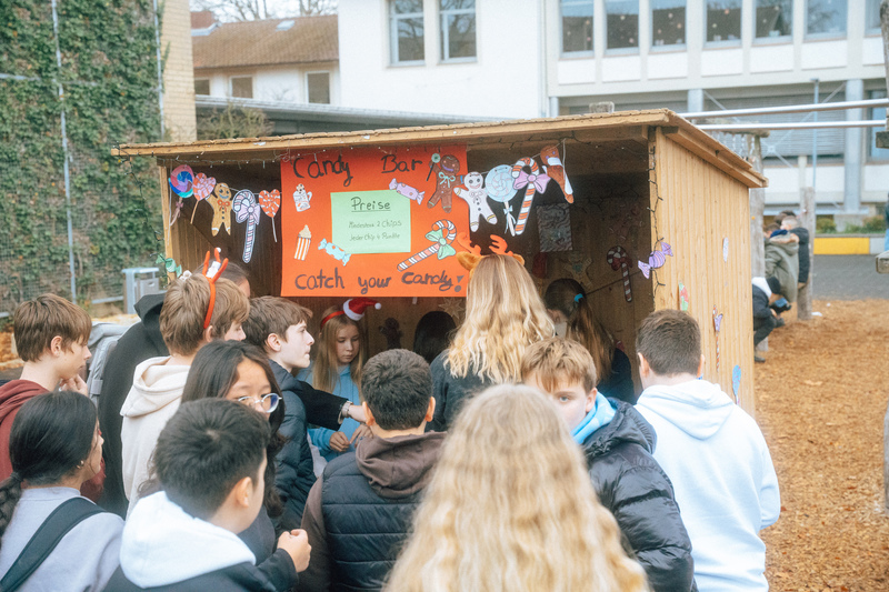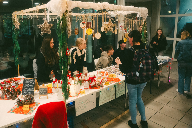 Neben den Kunst- und Kreativständen übernahmen die Klassen zusätzlich jeweils einen Essens- oder Getränkestand, sodass die Besucher:innen sich über ein breites gastronomisches Angebot freuen konnten – von Waffeln bis Bratwurst, von Snacks bis Tee und Punsch. Dadurch wurde der Markt zu einem lebendigen, von der gesamten Schülerschaft getragenen Gemeinschaftsprojekt.