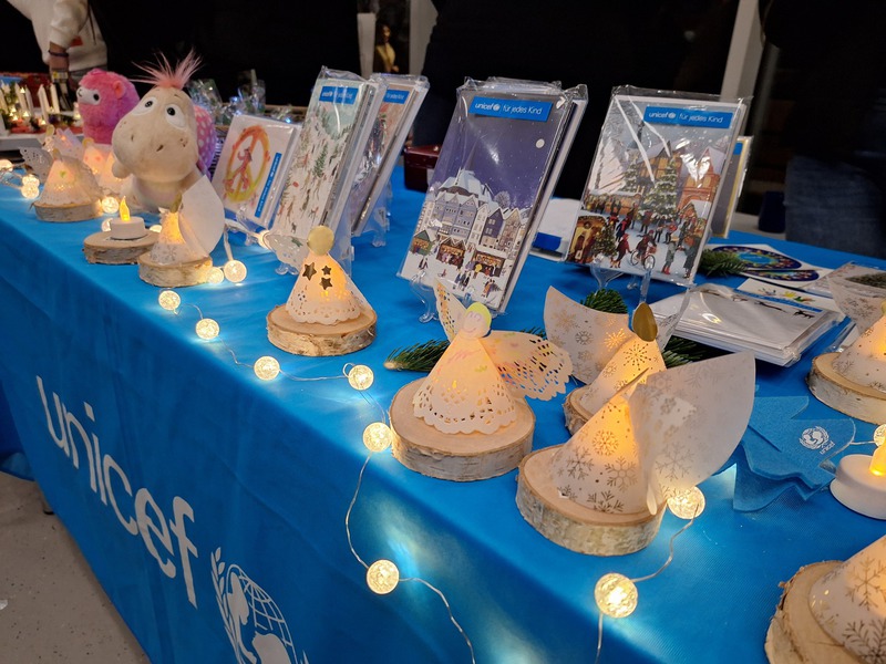 Das Bühnenprogramm vor dem Forum sorgte den ganzen Nachmittag über für musikalische, literarische und künstlerische Höhepunkte. So traten unter anderem die Jungen aus dem Jungenlese-Projekt unter der Leitung von Michael Helm auf und präsentierten dessen humorvollen Text über den alljährlichen weihnachtlichen Stress, der das Publikum immer wieder zum Lachen brachte. Der UNICEF-Chor füllte den Raum mit einfühlsamen Melodien, während eine talentierte Schlagzeugspielerin mit einem energiegeladenen Solo beeindruckte und für mitreißende Momente sorgte. Ergänzt wurde das Programm durch weitere musikalische und kreative Beiträge, die dem Novemberzauber eine besonders warme und festliche Atmosphäre verliehen.