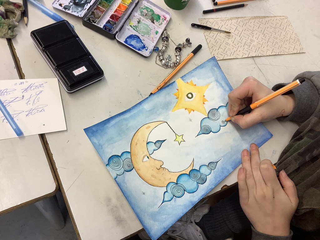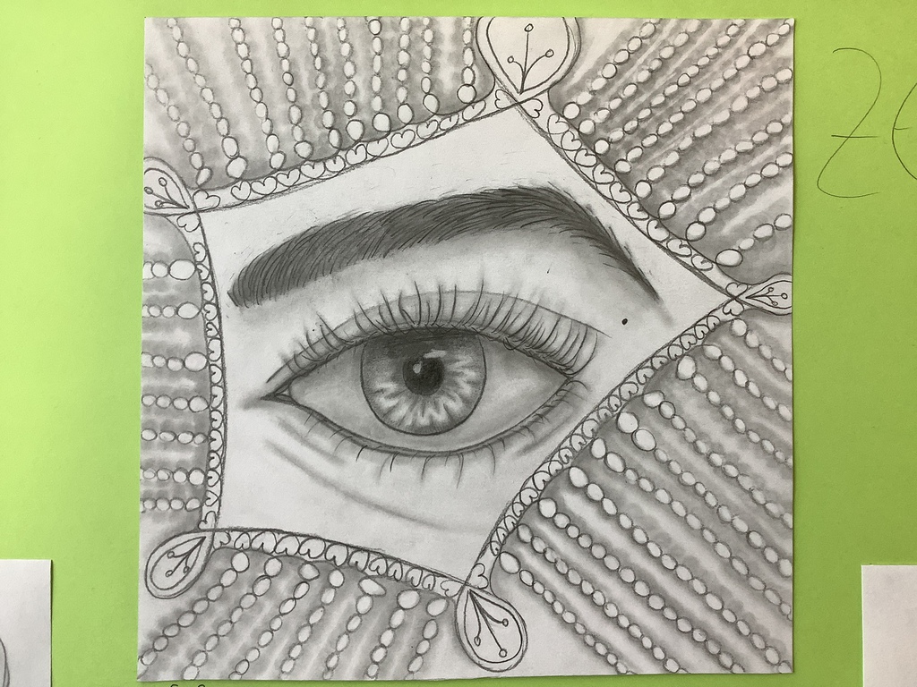 Auf den folgenden Bildern sind einige Ergebnisse der Schüler:innen Laura G., Felicia L., Amanie S., Sophie M., Layan A., Melina K., Pia O. und Tessa E. des Projektes „Mein künstlerisches ICH“ unter der Leitung von Frau Hoffmann zu sehen: